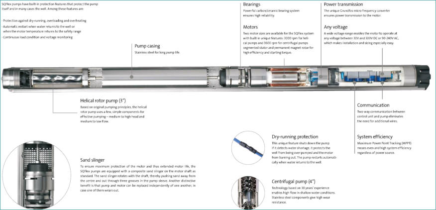 316 stainless steel for more aggressive waters the pump is fitted with a high efficiency motor for DC or AC voltage.